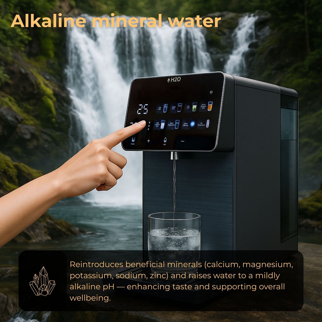 • Remineralisation + Alkaline stage – raises pH and reintroduces healthy minerals for better taste